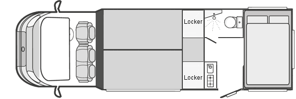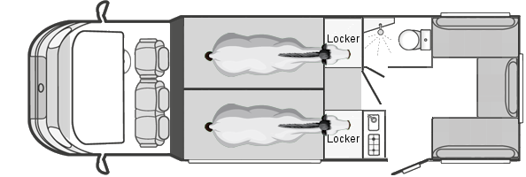 The living area is separated from the horse area with a wall and door to keep them separate. Access is also provided at the side from outside via a further door. Both doors are lockable, allowing items to be secured while away from the vehicle riding. The living area provides full living accommodation with bed, shower/toilet, hob, sink and fridge.